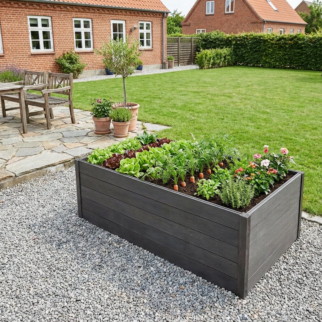 Vacker och underhållsfri upphöjd bädd tillverkad av komposit, som har en fantastiskt lång livslängd.