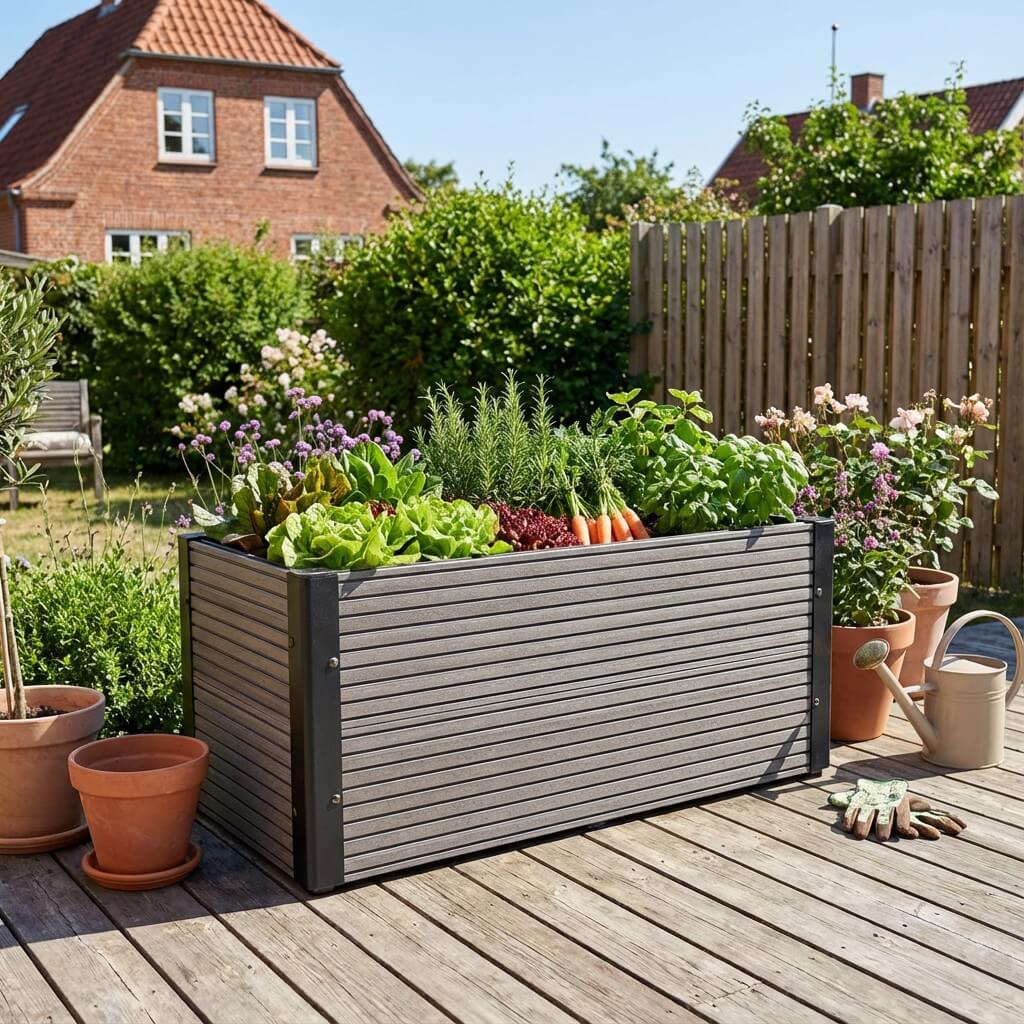 Vacker och underhållsfri upphöjd bädd tillverkad av komposit, som har en fantastiskt lång livslängd.