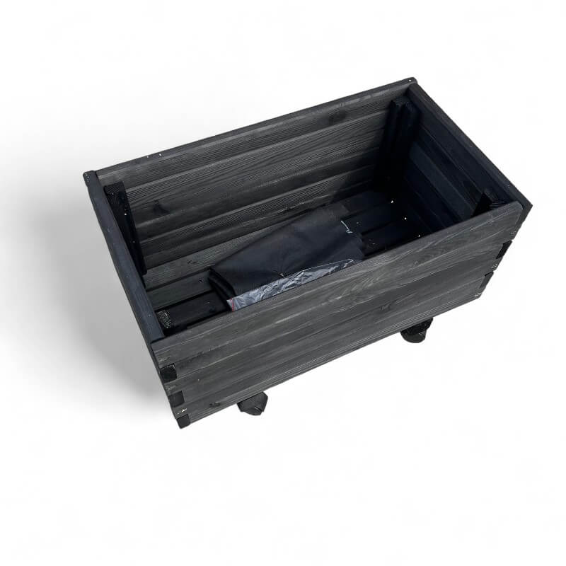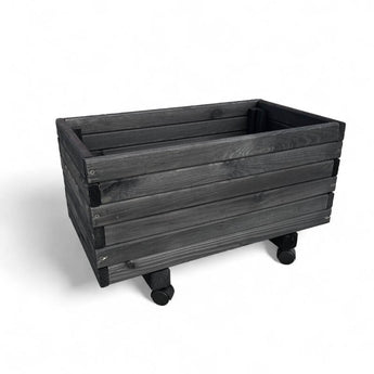 Plantekasse i sort træ på hjul
